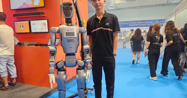 Một trong những điểm nhấn của sự kiện trong sáng 9-7 là gian hàng của Công ty TNHH MTV Ứng dụng Công nghệ và Truyền thông Âu Lạc (Alta Media), nơi trưng bày robot hình người.