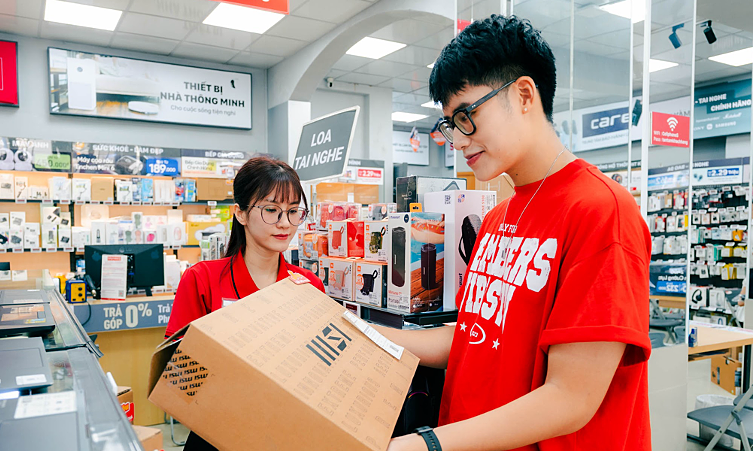 Người dùng trải nghiệm, mua thiết bị công nghệ tại một cửa hàng CellphoneS. Ảnh: CellphoneS