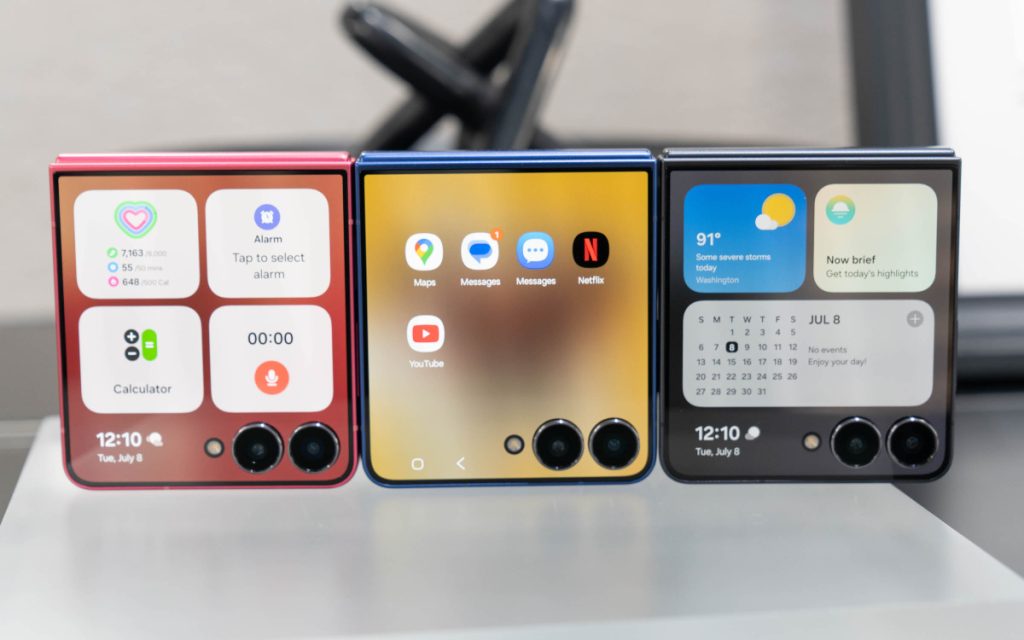 Màn hình ngoài có tên Flex Window tăng kích thước lên 4,1 inch, chiếm trọn mặt trước với hai lỗ khoét cho camera chính, thay cho màn hình 3,4 inch dạng thư mục trên thế hệ trước. Khả năng cá nhân hóa hình ảnh và tính năng trên màn hình ngoài của Z Flip7 cũng tốt hơn nhờ tăng kích thước.