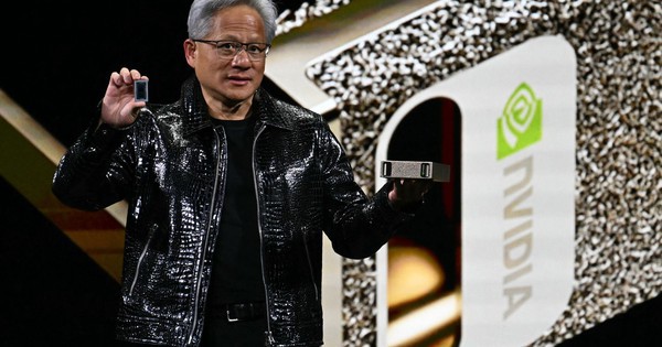 CEO Jensen Huang tại sự kiện CES 2025 của Nvidia – Ảnh: Patrick T. Fallon/AFP.