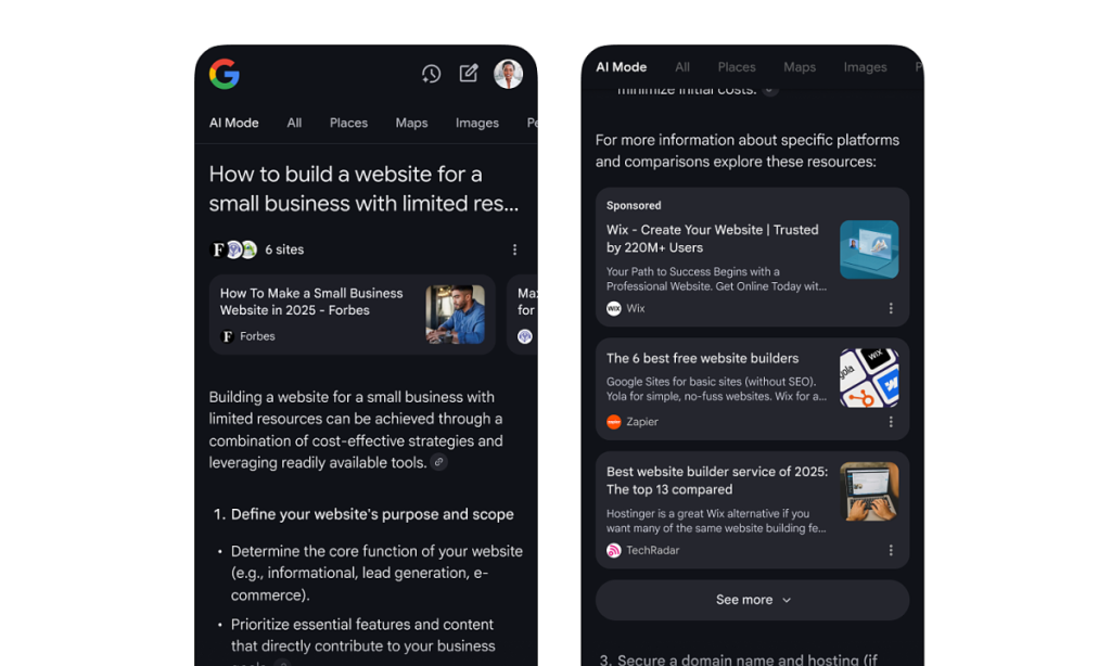 Quảng cáo xuất hiện trong tính năng AI Mode. Ảnh: Google