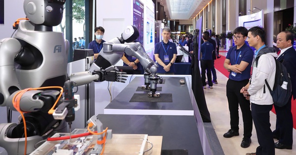 Bên cạnh các sự kiện chính, Diễn đàn Kinh tế Mùa thu 2025 còn có nhiều gian hàng trưng bày hàng loạt công nghệ, thể hiện rõ định hướng phát triển xanh gắn với chuyển đổi số. Ngay từ khu vực cổng vào, robot tự động giới thiệu thông tin về diễn đàn đã thu hút sự chú ý của nhiều khách tham dự.
