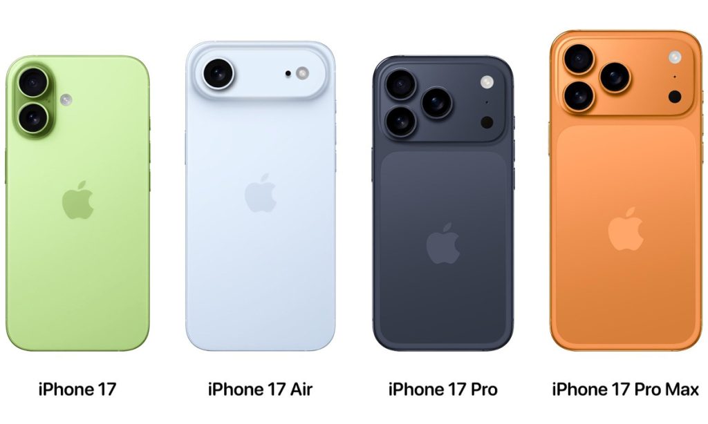 Apple dự kiến trình làng bốn mẫu iPhone mới. Tuy nhiên, năm nay hãng có thể loại bỏ phiên bản Plus để thay bằng dòng Air mỏng nhẹ hơn, gọi là iPhone 17 Air với thiết kế siêu mỏng 5,5 mm với camera dạng viên thuốc chiếm hết bề ngang, độ phân giải 48 megapixel. Model này có màn hình 6,6 inch với tấm nền OLED độ sáng cao hơn 30% so với iPhone 16, trang bị công nghệ ProMotion, tần số quét 120 Hz, tích hợp modem tùy chỉnh do Apple tự thiết kế, nhưng không hỗ trợ băng tần mmWave 5G nhanh nhất và có giá tương đương Plus với khởi điểm 800 USD.