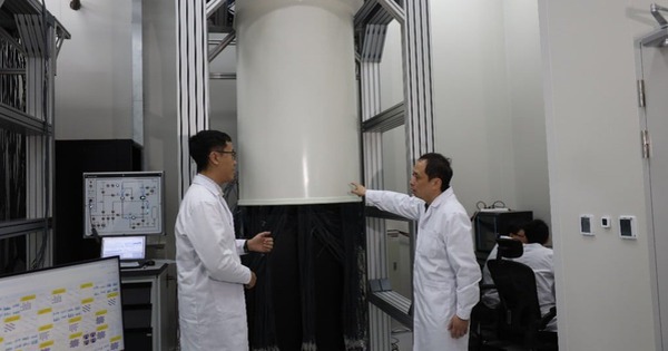 Các nhà nghiên cứu tại Đại học Khoa học và Công nghệ Trung Quốc đứng trước hệ thống máy tính lượng tử siêu dẫn Tổ Xung Chi 3.