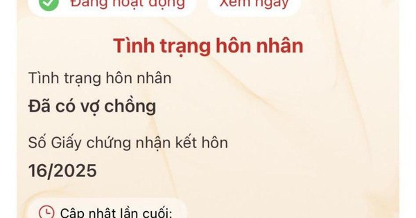 Tình trạng hôn nhân đã được cập nhật lên ứng dụng VNeID. Đây là việc đồng bộ thông tin về tình trạng kết hôn hoặc độc thân của bạn từ hệ thống Cơ sở dữ liệu Quốc gia về Dân cư vào tài khoản định danh điện tử VNeID của bạn.