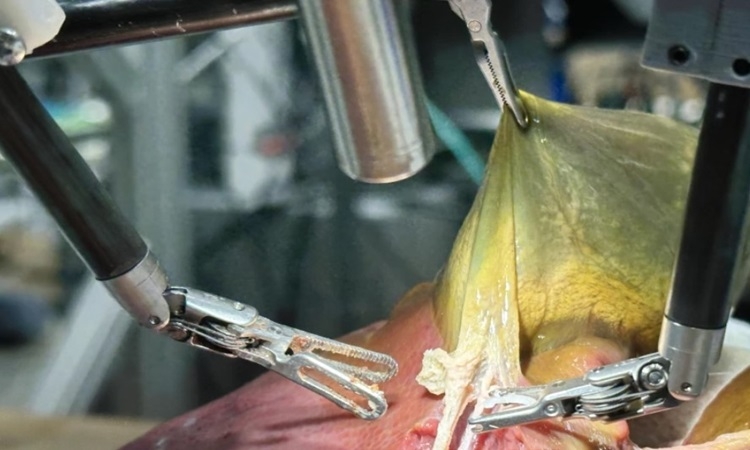 Robot SRT-H tiến hành phẫu thuật túi mật. Ảnh: Đại học Johns Hopkins