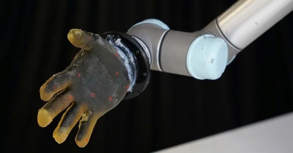 Cận cảnh bàn tay robot gắn da gelatin.Ảnh: Đại học Cambridge